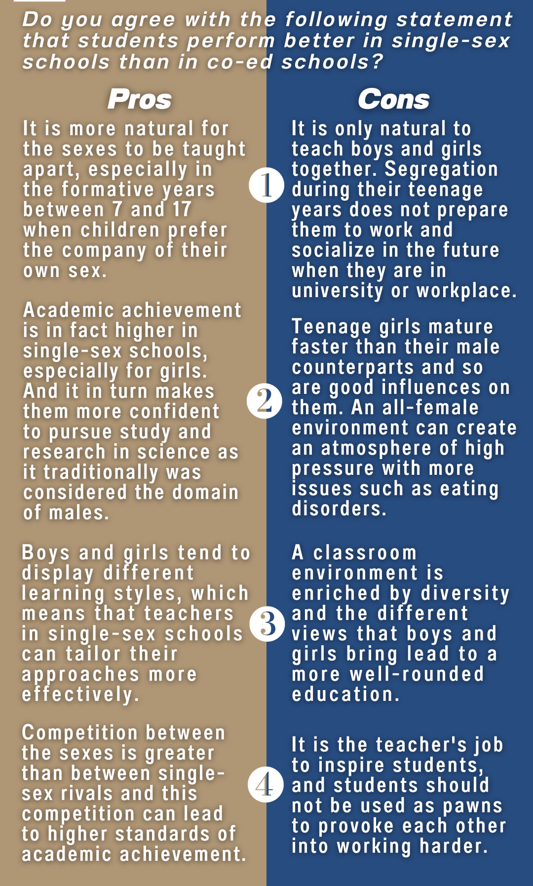 2. 你同意还是反对以下观点:学生在男校或女校的表现会比在普通学校的表现会更优异?