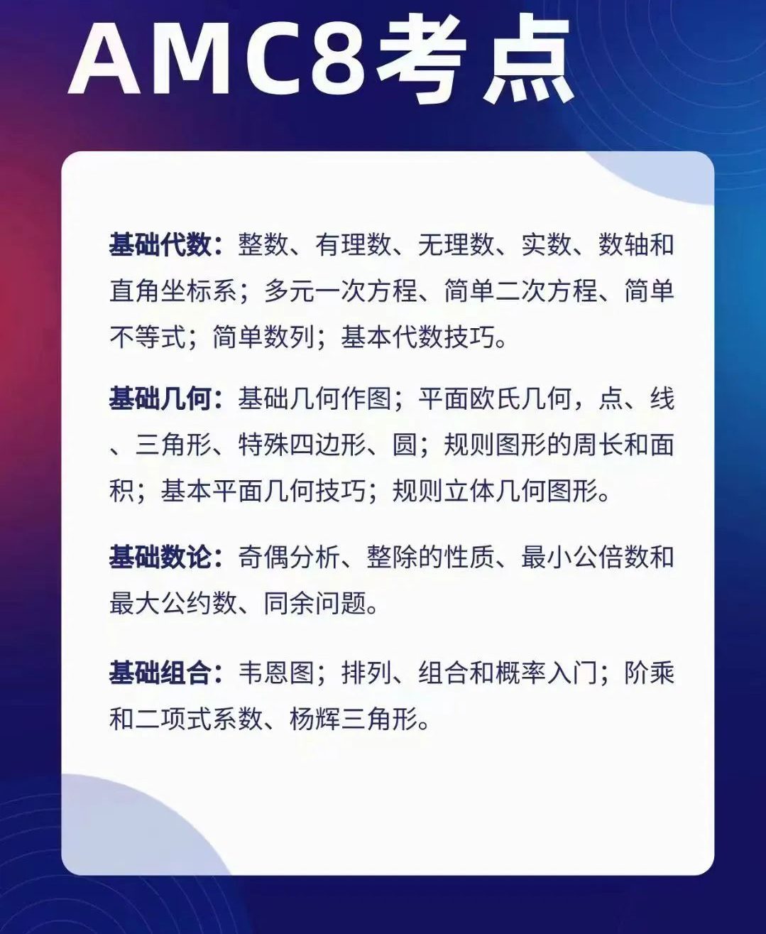 ✅️AMC8:适合G3-G8学生参加,主要倾向知识点的广度考察,会涉及到初中的知识内容。所以比较适合数学基础中等偏上的学生。
