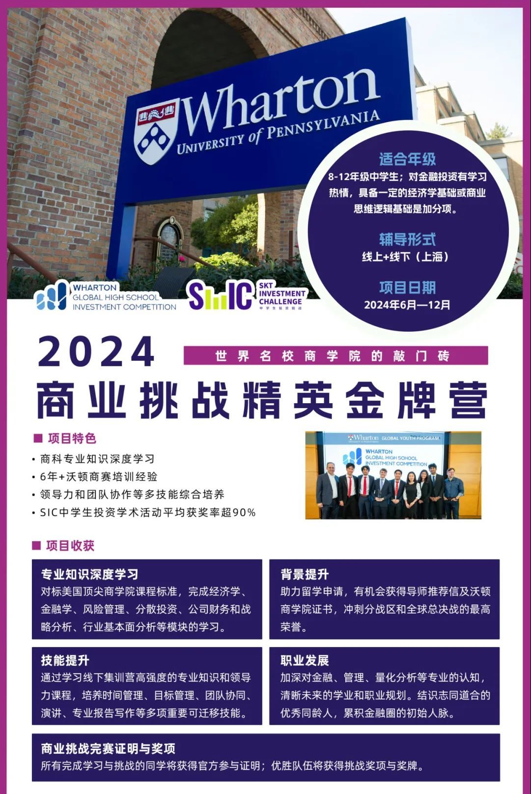 为了让大家能够更好、更完整的体验投资类竞赛,能不止步于浅尝辄止而是在此方向上继续拓展自己的学术深度,机构2024商业挑战精英金牌营(SIC S12+沃顿WGHS)正在招募!仅余少量名额!