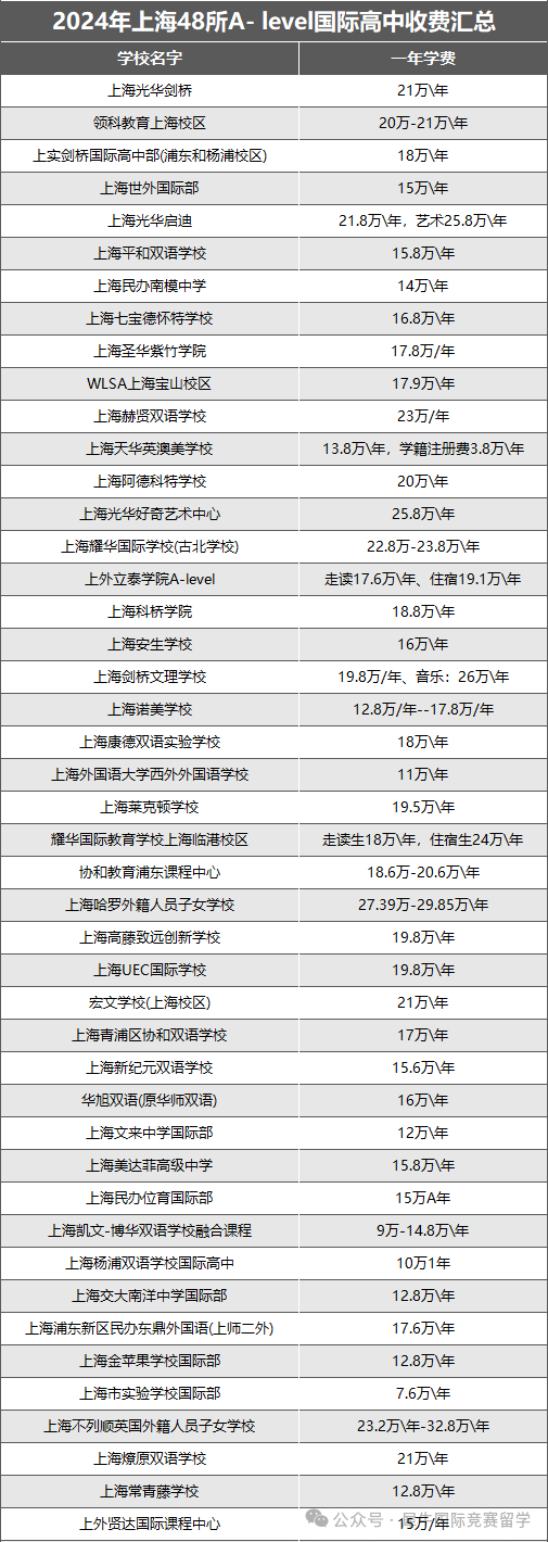 相比于普通学校,国际学校的学费普遍都是比较高的,多数是在10-25万/年之间。