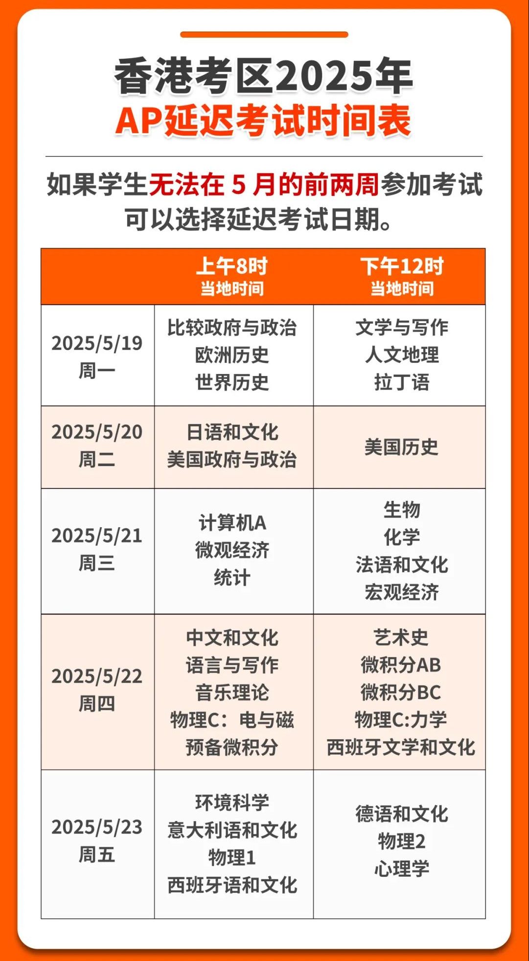 ⚠️如果考生之所以参加AP延迟考试是时间表与以下情况冲突: