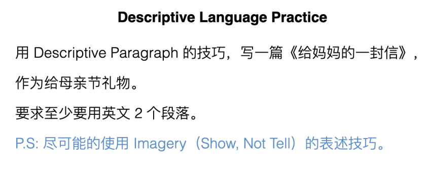 母亲节刚刚过去,我在 学术英语 中学写作课上给学生们布置了一个小任务。