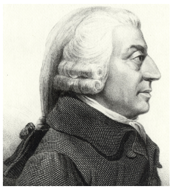 From top to bottom: economists Milton Friedman, John Maynard Keynes, and John Hicks. On the right, the father of modern economics, Adam Smith.